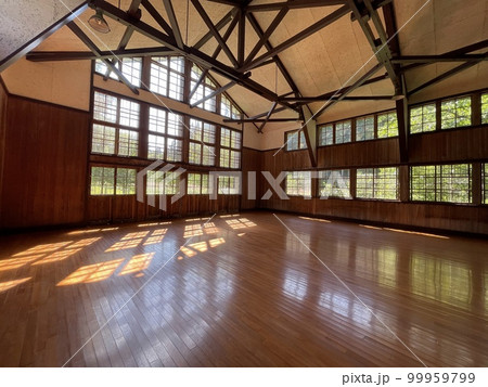 秋田県田沢湖散策 思い出の潟分校 窓が素敵な体育館