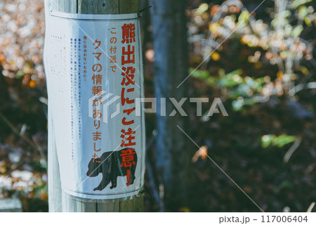 クマ出没注意の看板 青梅市