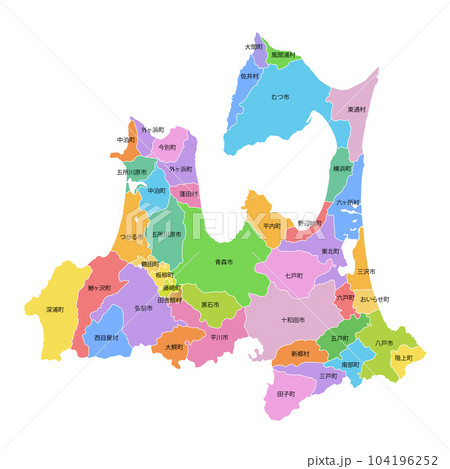 青森県の地図・Aomori・市町村名(市町村境区分け)