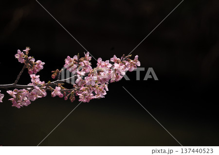 黒背景に映える河津桜の花(埼玉県久喜市 青毛堀川沿い)