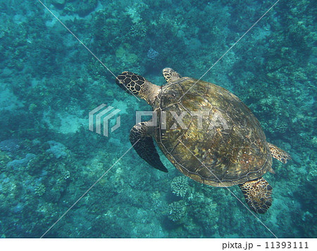 沖縄 渡嘉敷島アオウミガメの水中写真