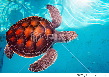 沖縄 渡嘉敷島の渡嘉志久ビーチ アオウミガメの水中写真