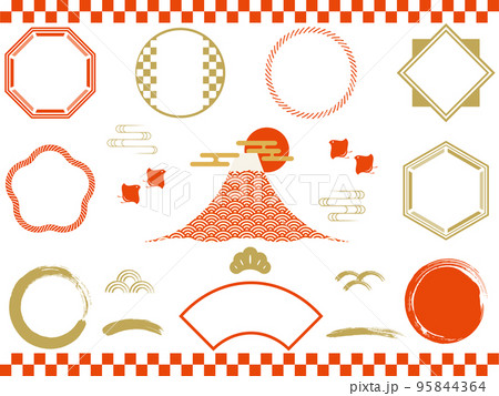 シンプル、ミニマルな和のフレーム。富士山と伝統模様。