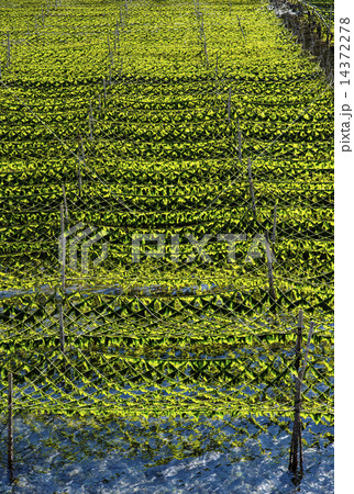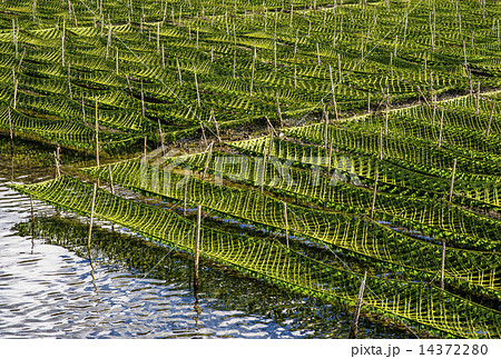 あおさ海苔養殖 アオサノリと海 海苔畑の風景