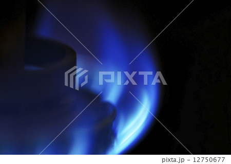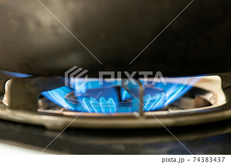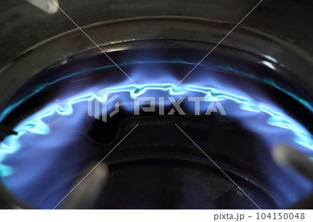 ガスコンロの炎,火のついたガスコンロ,天然ガスの炎,ガスコンロのバーナーから青い炎
