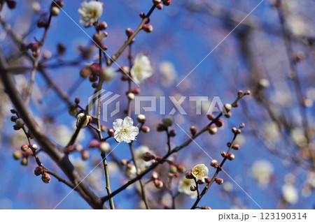 家の周りの草花 四季の色々 早春に美しい小さな花が咲きました 青空に映える白梅