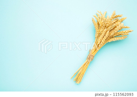 Golden spikelets of wheat in the field at sunset. Agricultural concept. Harvest nature growth.