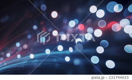 Abstract background featuring bokeh lights with red and blue streaks of light flow