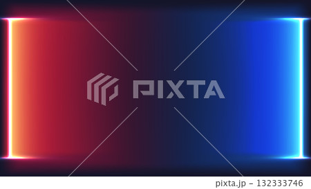 Futuristic neon light border with vibrant red and blue contrast on a dark abstract technology background for digital presentation banners and cyberpunk wallpapers