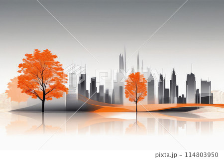 City autumn modern skyline full with greenery parks and green spaces.