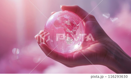 Hand Holding Pink Glass Globe in Sunlight