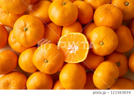 三ケ日みかん 青島みかん 扁平な果実 カット 断面 明るい背景