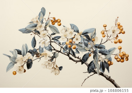 静謐な色調で描かれた美しい植物のイラスト、自然の優雅さを感じさせるデジタルアートAI画像