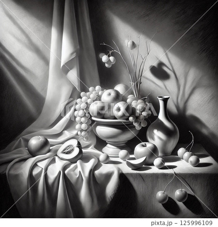 木炭による静物画