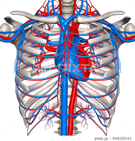 人体胸腹部血管網(胸骨・肋軟骨削除)
