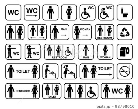 Public toilet icon set vector illustration. Restroom sign symbol man woman people stick figure line outline pictogram