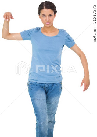 Powerless brunette in jeans and tshirt