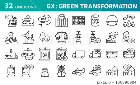 GX(グリーン・トランスフォーメー ション)に関する32個のアイコンセット。