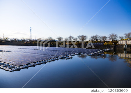 再生可能エネルギー発電設備 太陽光パネルと青空