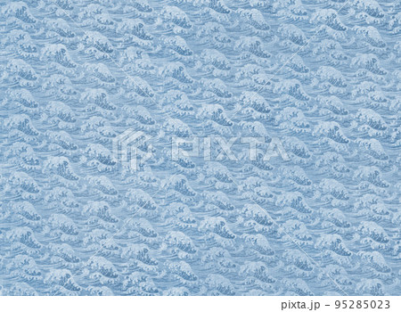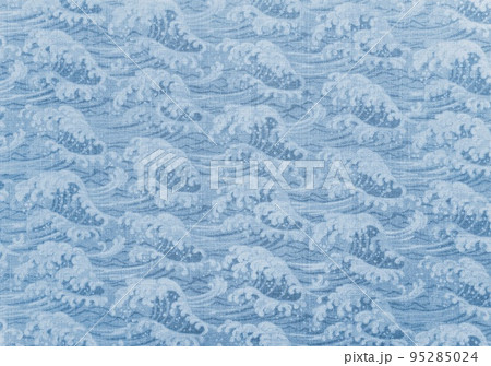 [素材] 合成繊維の伝統的な和柄幾何学模様の波型を描いた青海波のパターンデザイン。