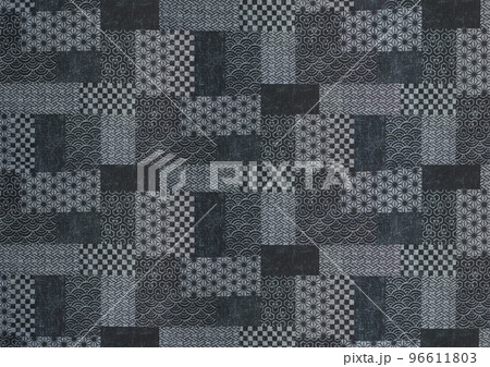 [素材] 伝統的な和柄幾何学模様のモノクロパッチワークの広いパターンデザイン。