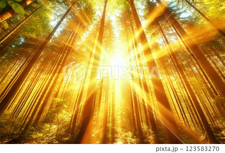 さんご礁のカラフルな水中世界と差し込む太陽の光