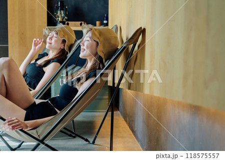 サウナに入る女性