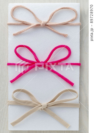色つきの紐で蝶々結び