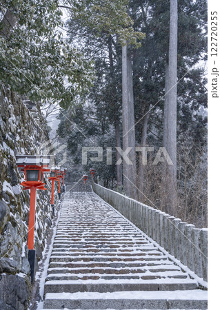 雪が積もった鞍馬寺参道 由岐神社(靫明神) 大杉さん