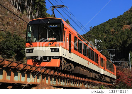 紅葉の中を駆ける叡山電鉄・展望列車「きらら」