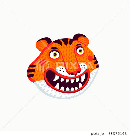 Tiger vector head, cartoon tiger funny face on white background. Organic flat style vector illustration