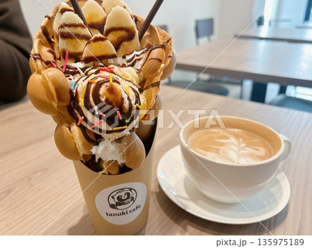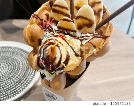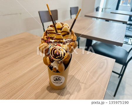 若者に人気!話題の台湾・韓国スイーツグルメ「バブルワッフル」のイラスト