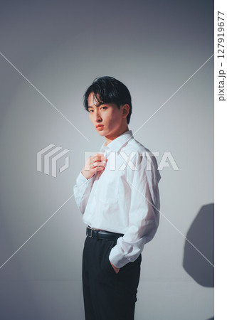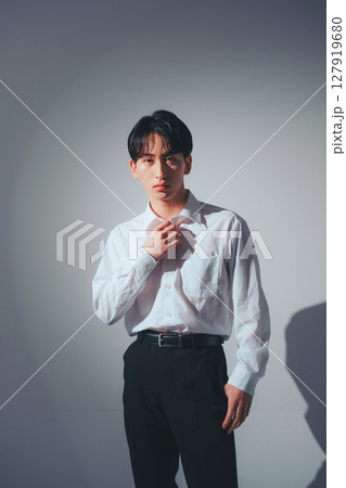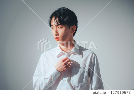 陰影で魅せる韓国メンズ × ホワイトシャツ