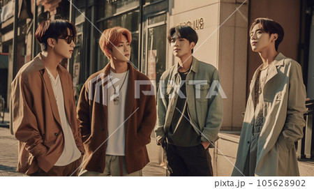 4人組の男性アイドルグループ・芸能人・モデル・ミュージシャン・大学生(Generative AI)