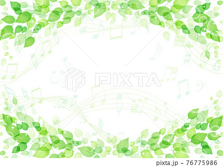 キラキラ 葉っぱと音符の背景 フレーム 横