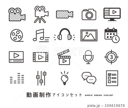 動画制作に関するアイコンやピクトグラムのベクターイラスト素材