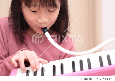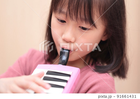 鍵盤ハーモニカを演奏する女の子