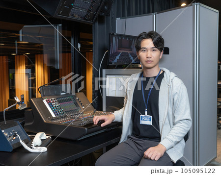 ホールのPA室で働く若い男性のポートレート