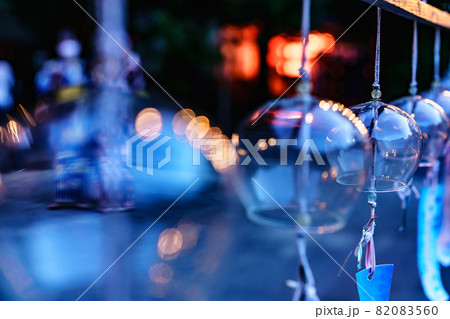 水無瀬神宮と風鈴を撮影するカメラ女子