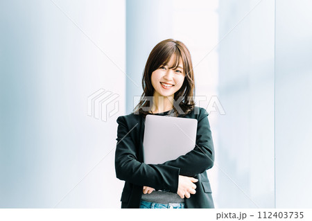 ノートパソコンを持つビジネスウーマン