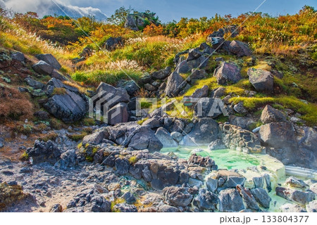 紅葉に染まる須川の源泉