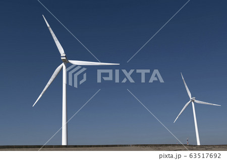 茨城県柳川海岸の風力発電の風車が見える風景