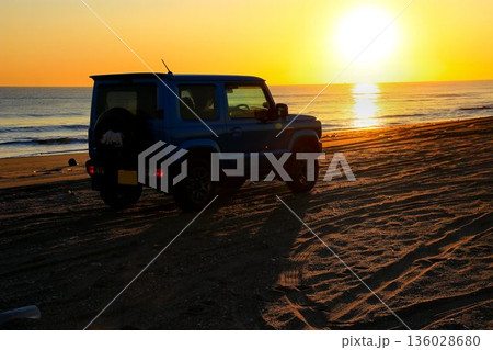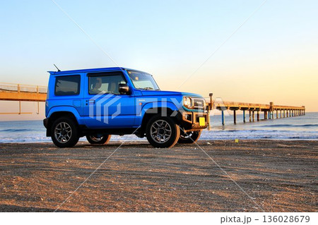 本格派4駆なのにキュートな外観… 『ジムニー』と【須田浜海岸】の朝陽