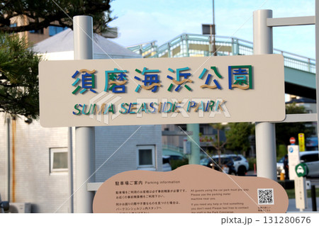 須磨海浜公園(SUMA SEASIDE PARK)の看板が見える風景 兵庫県神戸市須磨区
