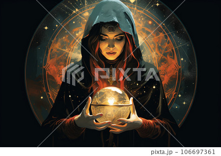 占い師の女性のアニメ風イラスト(AI生成画像)