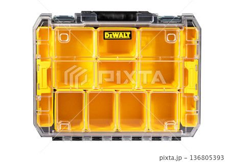 Organizing tools in a clear, sturdy storage box for crafting and DIY projects. 07.30.25. Kyiv. Ukraine.
