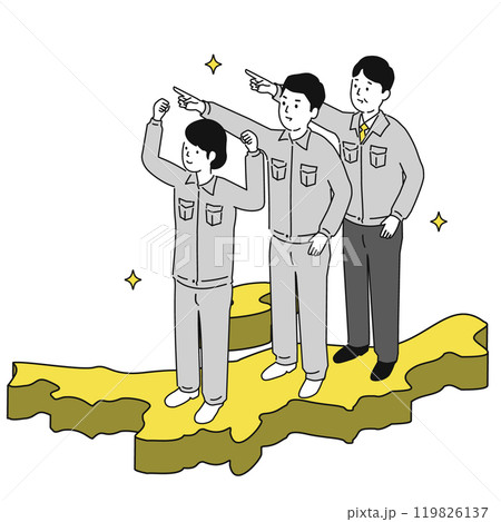 群馬県で働くイメージイラスト、笑顔の作業服の男女