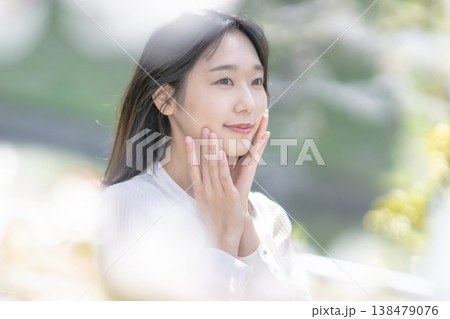 春の強い日差しと女性 紫外線カット しわ予防 ビューティー素材