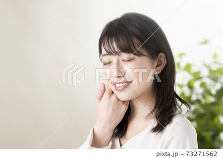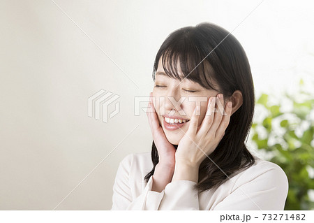ビューティーイメージ 目を閉じて頬に手を添える女性