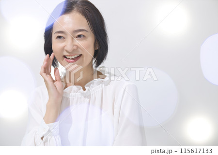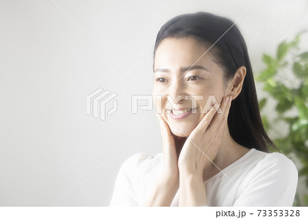 ビューティー イメージ 頬に手を添えて微笑む女性